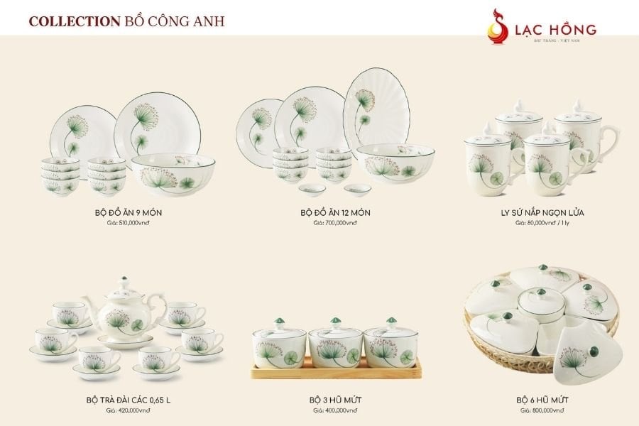 Quà tặng 2026 không chỉ là vật chất, đó là văn hóa. Với 7 Bộ Collection Quà Tặng độc đáo: Bồ Công Anh, Sen Bóng, Indochine, Liên Hoa Lam Ngọc, Liên Hoa Tịnh Ngọc, Ngọc Liên Phú Quý và Hồng Liên Cát Tường, Xưởng Gốm Sứ Lạc Hồng đã sẵn sàng cùng bạn tạo nên những dấu ấn thương hiệu khó phai. Hãy để món quà của bạn kể câu chuyện về sự tinh tế và thịnh vượng.