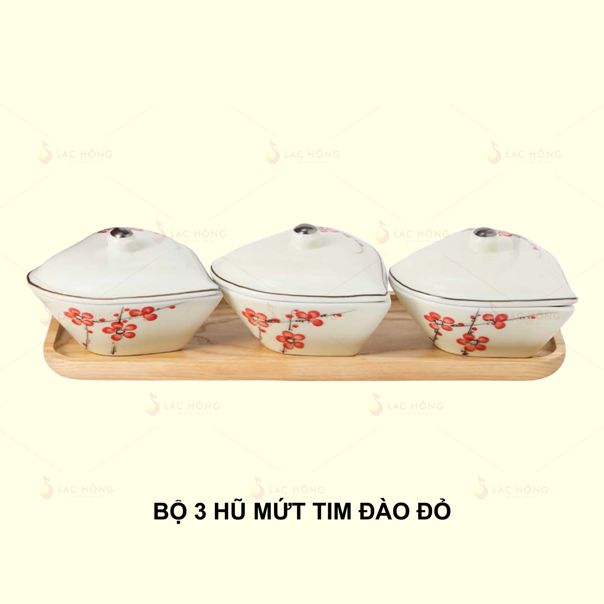 Bộ 3 Hũ Mứt Tim Hoa Đào Đỏ