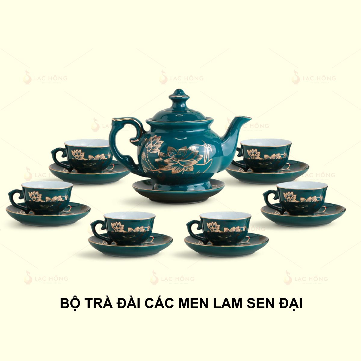 Địa Chỉ Mua Bộ Trà Đài Các Men Lam Sen Đại Kẻ Vàng Làm Quà Tặng