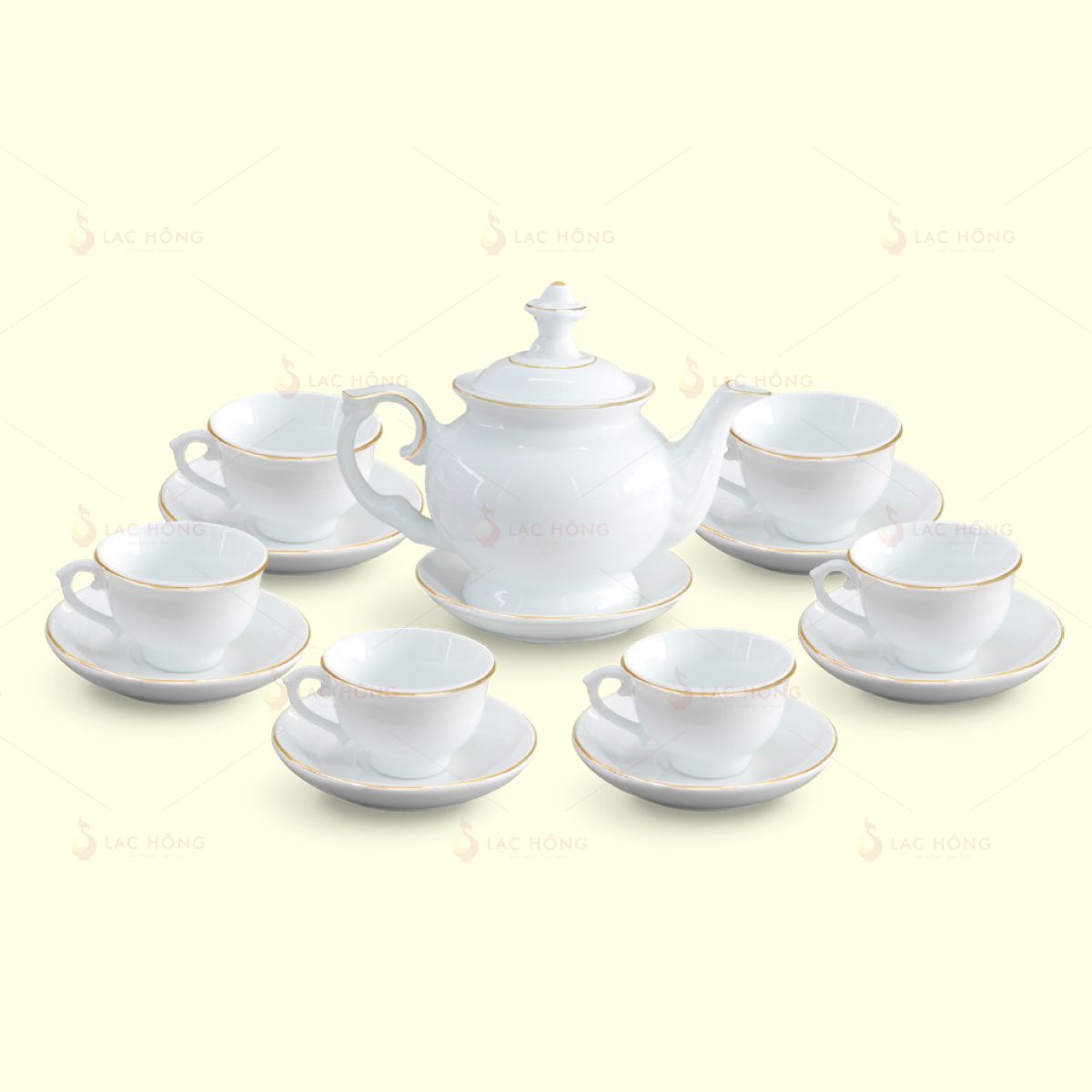 Bộ Trà Đài Các Trắng Kẻ Vàng được chế tác và phân phối bởi Gốm sứ Lạc Hồng với chất lượng và mẫu mã đảm bảo. Quý khách hàng quan tâm có thể đặt mua ngay tại website hoặc gọi hotline để được tư vấn nhanh nhất. Chúng tôi cam kết mang đến sản phẩm đồng bộ, sang trọng và đúng tiến độ giao hàng, giúp doanh nghiệp tiết kiệm thời gian, chi phí mà vẫn thể hiện được phong cách chuyên nghiệp, chỉn chu trong từng chi tiết.