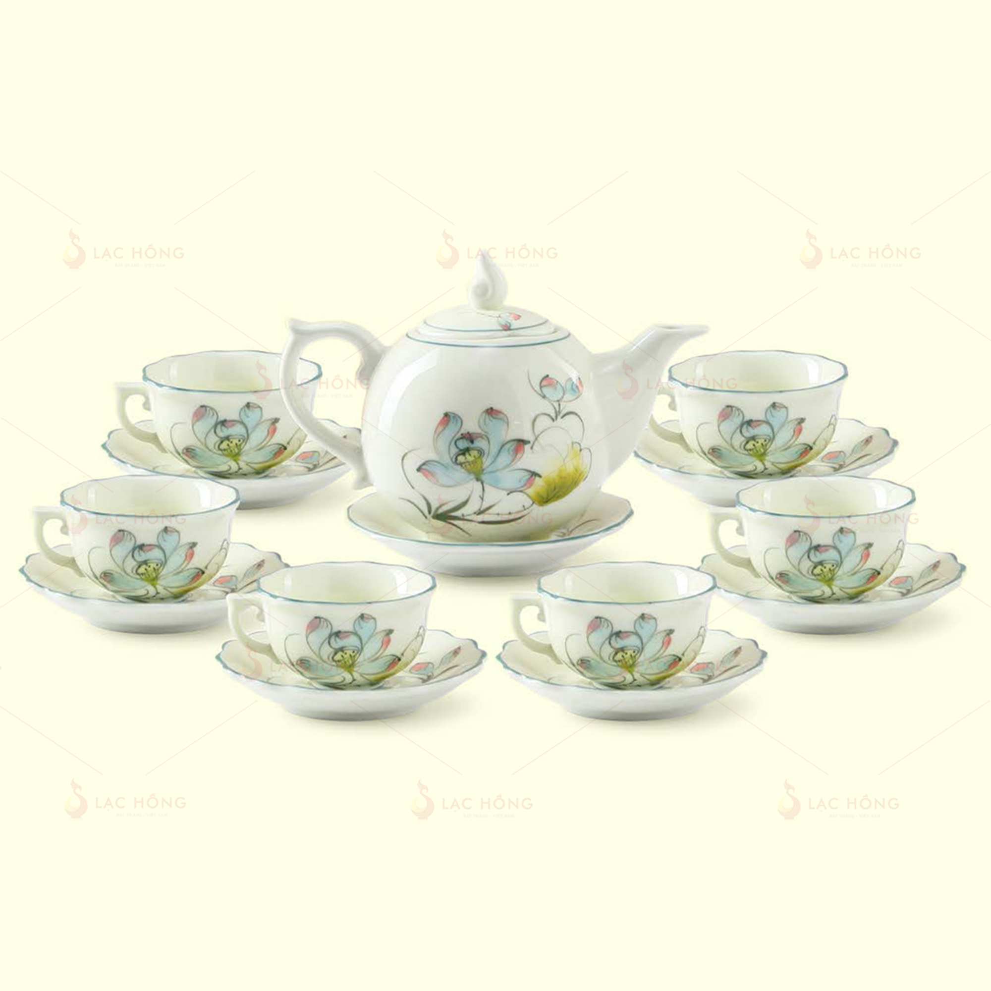 Bộ Trà Dáng Mẫu Đơn Hoa Sen Bóng