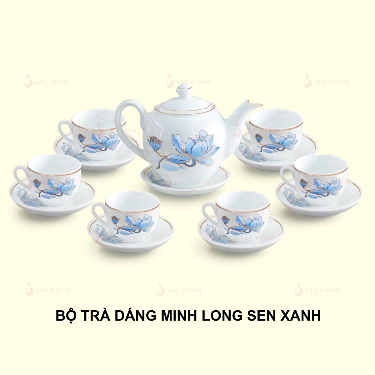 Bộ Trà Sứ Dáng Minh Long là dòng sản phẩm được đầu tư về kiểu dáng tinh gọn, thon thả, mang phong cách hiện đại. Với tông men trắng sứ thuần khiết điểm xuyết họa tiết Sen Xanh Kẻ Vàng duyên dáng, bộ trà mang đến cảm giác thuần khiết, trang nhã, nhưng vẫn quý phái – phù hợp sử dụng trong gia đình, văn phòng, hay làm quà tặng doanh nghiệp, quà tặng tri ân khách hàng, quà tặng Tết, kỷ niệm thành lập công ty... Họa tiết Hoa Sen Xanh tượng trưng cho sự thanh tịnh, trí tuệ và sự bình yên. Bộ ấm chén đi kèm hộp xi hoặc hộp thiết kế và có thể khắc chữ theo yêu cầu của khách hàng.