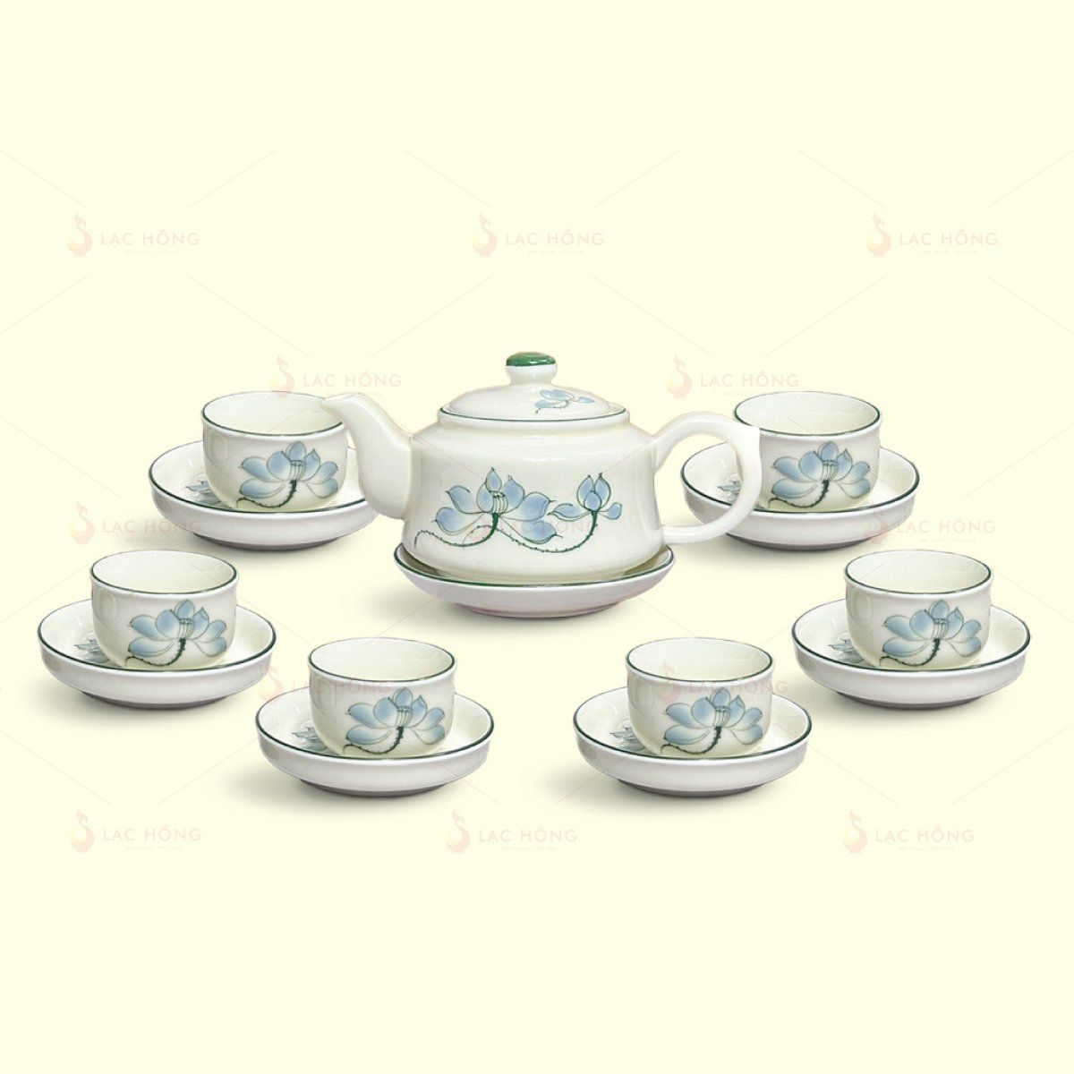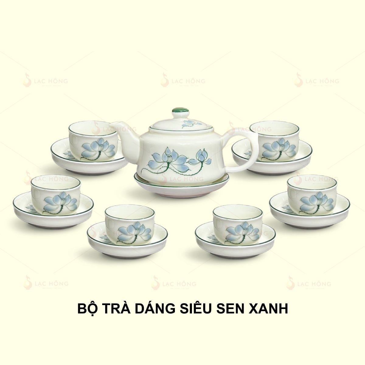 Bộ Trà Dáng Siêu Hoa Sen Xanh là sự kết hợp giữa thiết kế dáng ấm Siêu (dáng cao, thanh thoát) hiện đại và họa tiết Hoa Sen Xanh tinh tế. Màu men trắng sứ tinh khôi, làm nổi bật họa tiết Sen Xanh, tạo nên vẻ ngoài tao nhã, hiện đại và tràn đầy năng lượng tích cực. Bộ trà được nhiều khách hàng ưa chuộng sử dụng và chọn mua để làm quà tặng người thân, bạn bè và cả tặng quà số lượng lớn. Từng chi tiết trong bộ ấm chén không chỉ được đánh giá cao bởi khách hàng trong nước mà còn được nhiều khách hàng nước ngoài lựa chọn như một món quà lưu niệm.