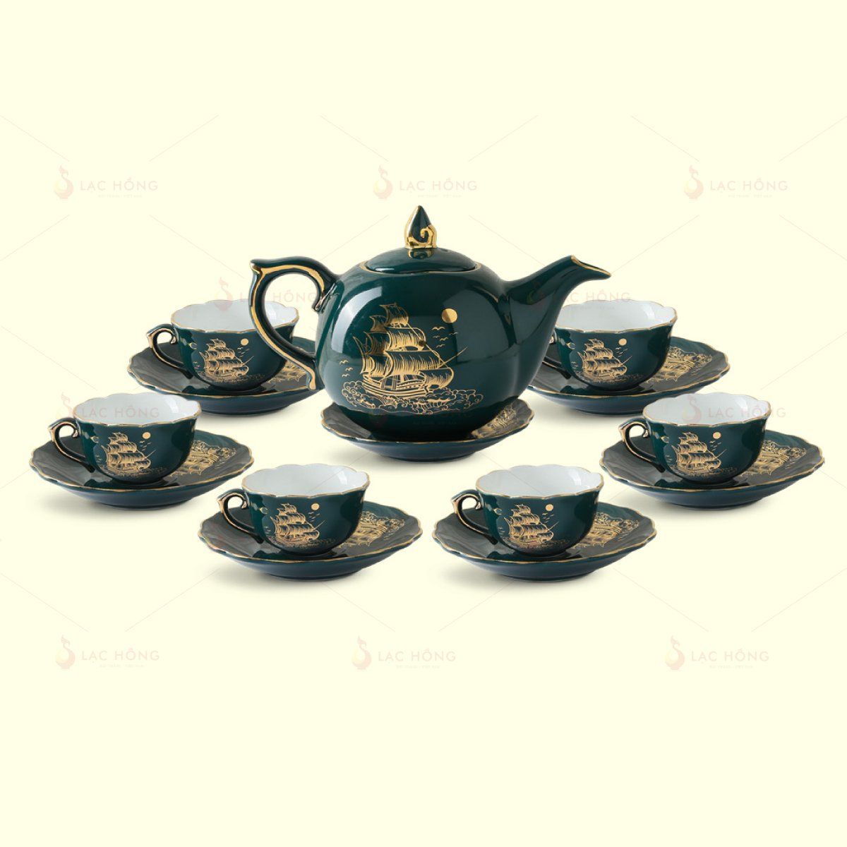 BỘ TRÀ MẪU ĐƠN MEN LAM THUẬN BUỒM KẺ VÀNG