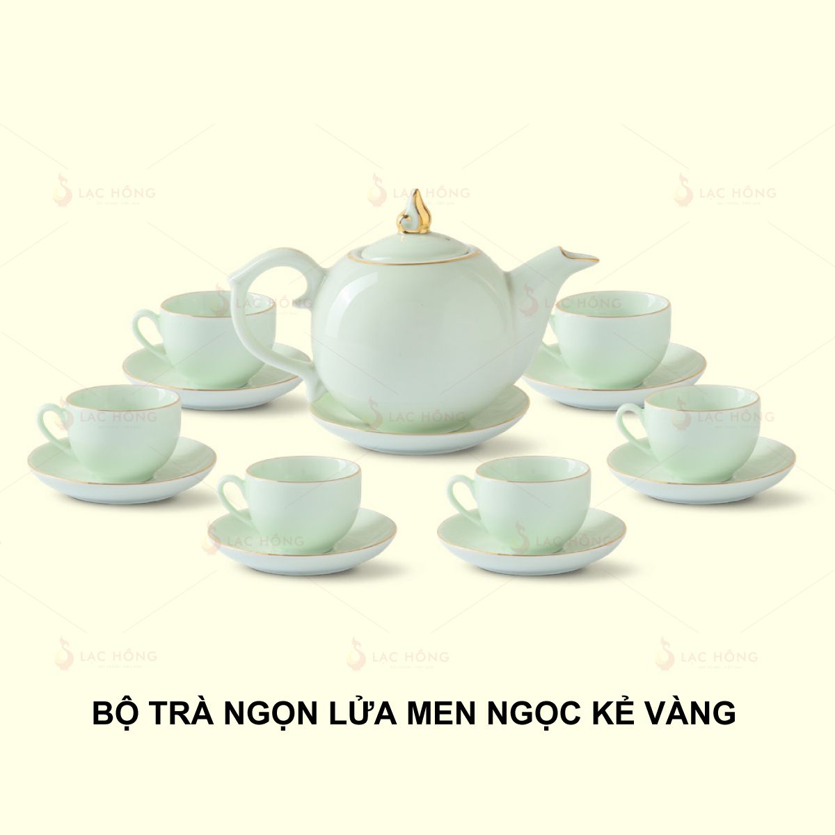 Bộ Trà Ngọn Lửa Men Ngọc Kẻ Vàng