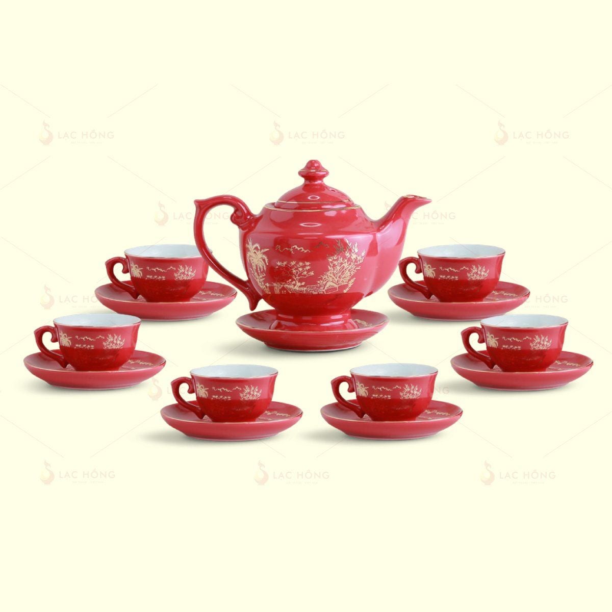 Địa Chỉ Mua Bộ Trà Thần Đèn Men Đỏ Hào Gia Kẻ Vàng Làm Quà Tặng