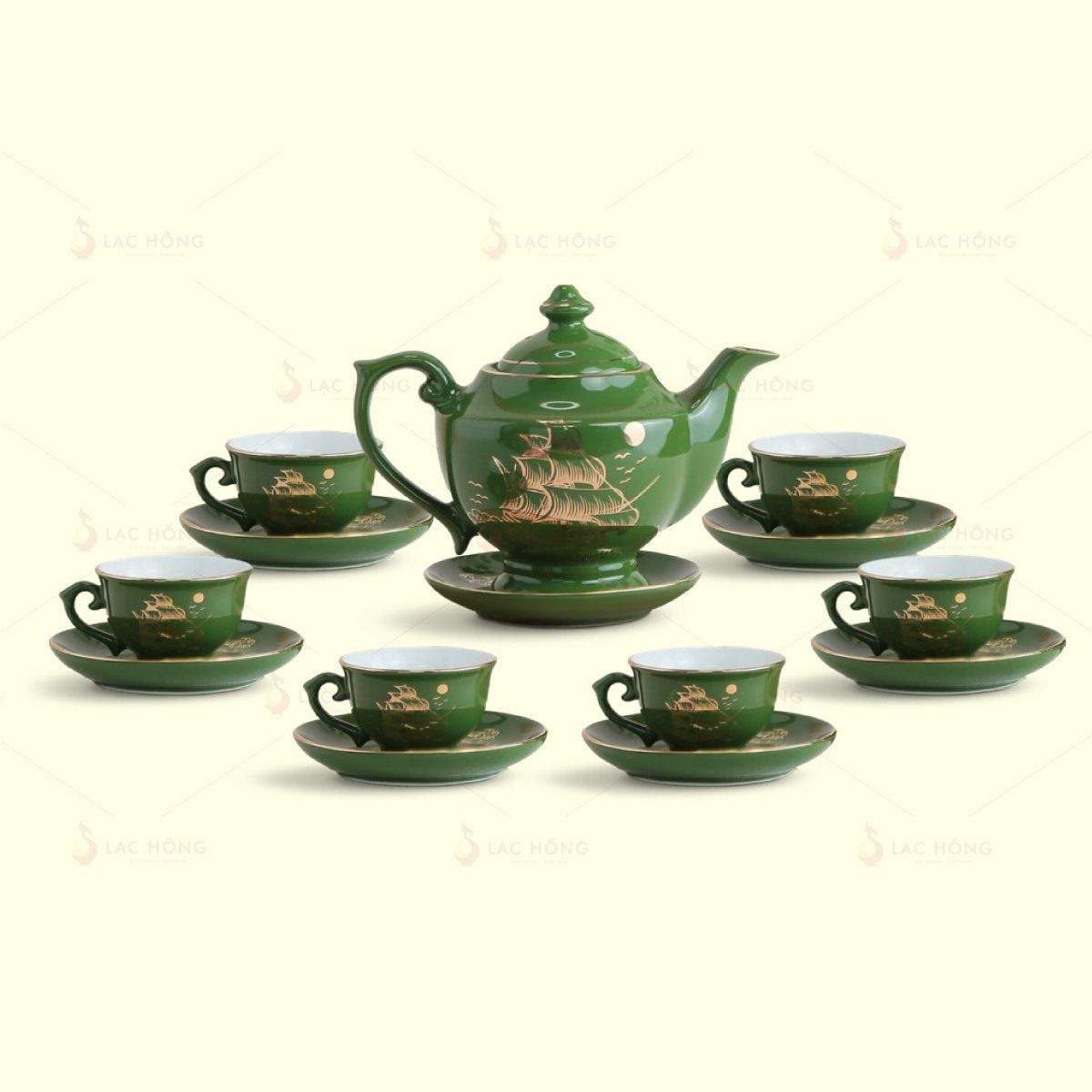 BỘ TRÀ THẦN ĐÈN MEN LỤC THUẬN BUỒM KẺ VÀNG