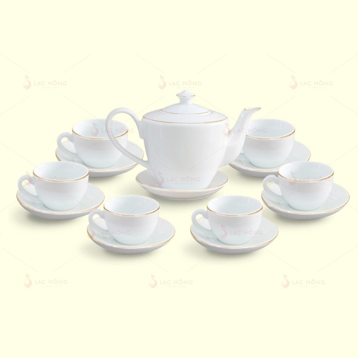 Bộ Trà Vai Vuông Trắng Kẻ Vàng Lạc Hồng có thiết kế hiện đại và màu men trắng đơn giản cùng thiết kế thân ấm bầu tròn dễ cầm. Bộ trà được nhiều khách hàng ưa chuộng sử dụng và chọn mua để làm quà tặng người thân, bạn bè và cả tặng quà số lượng lớn. Từng chi tiết trong bộ ấm chén không chỉ được đánh giá cao bởi khách hàng trong nước mà còn được nhiều khách hàng nước ngoài lựa chọn như một món quà lưu niệm.