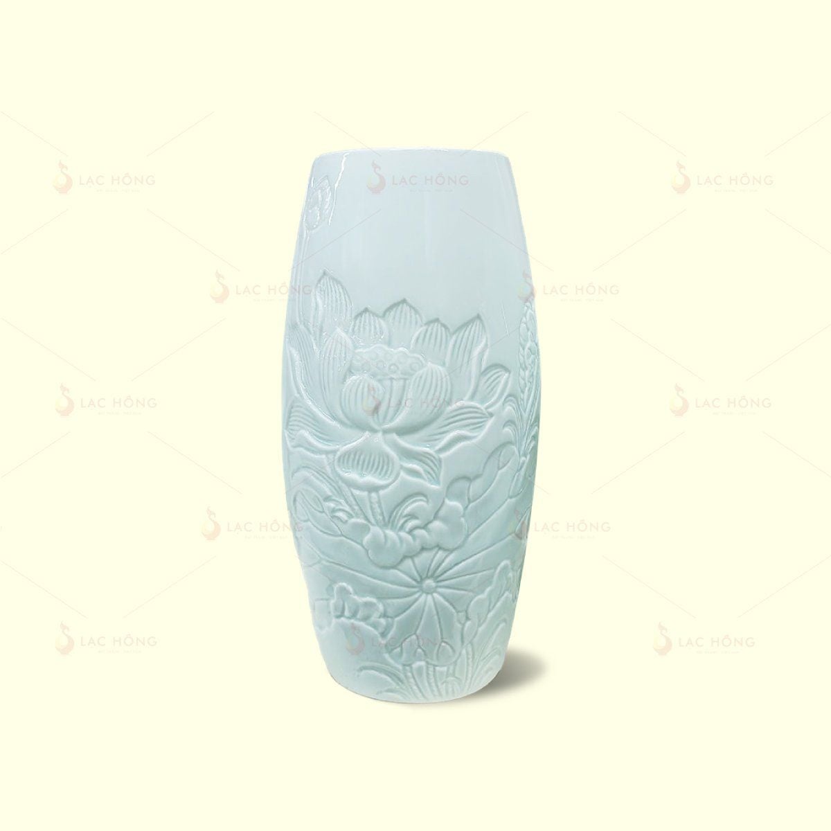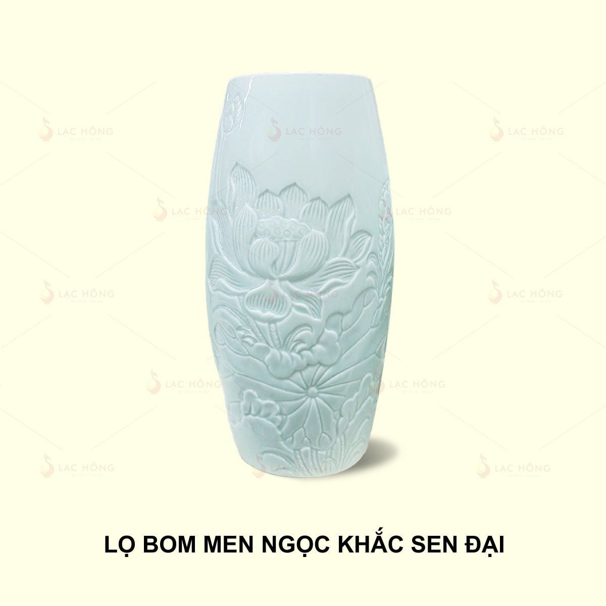 Lọ Hoa Dáng Bom Men Ngọc Khắc Sen Đại