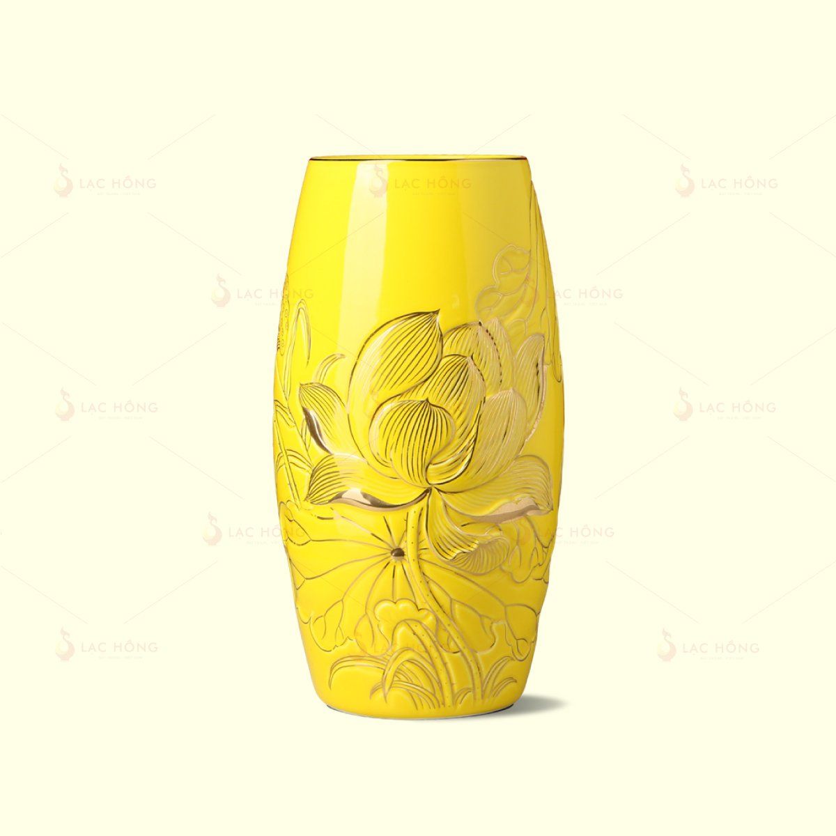 Lọ Hoa Dáng Bom Men Vàng Sen Đại Kẻ Vàng