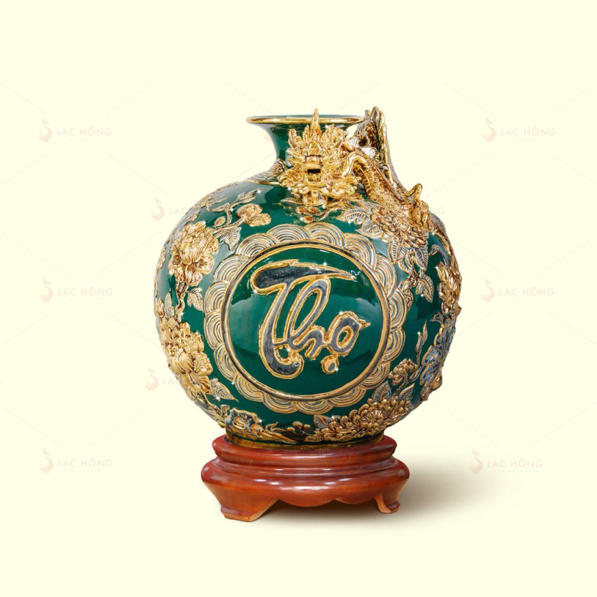 Tại Xưởng Gốm Lạc Hồng, chúng tôi không chỉ sản xuất các sản phẩm gốm sứ chất lượng cao mà còn cung cấp dịch vụ in logo theo yêu cầu, giúp doanh nghiệp dễ dàng tạo nên dấu ấn thương hiệu riêng trên từng sản phẩm. Với Quả Hút Lộc Trường Thọ Phú Quý Đắp Nổi Kẻ Vàng, khách hàng có thể yêu cầu in logo, tên thương hiệu, khẩu hiệu hoặc lời chúc lên thân, cổ hay miệng bình theo vị trí mong muốn.